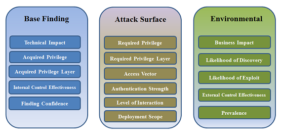 Common Weakness Scoring System (CWSS) is organized into three metric groups: Base Finding, Attack Surface, and Environmental. Each group contains multiple metrics – also known as factors – that are used to compute a CWSS score for a weakness.