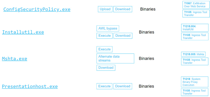Cybersecurity researchers have discovered a set of 11 living-off-the-land binaries-and-scripts (LOLBAS) that could be maliciously abused by threat actors to conduct post-exploitation activities.