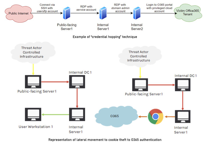 - Credential hopping for obscuring lateral movement