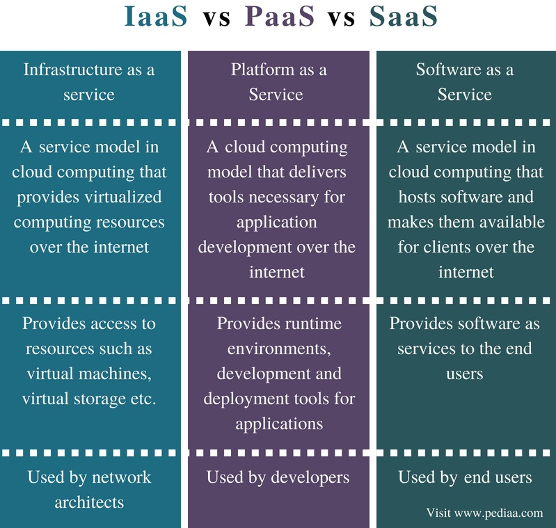 Learn the differences between IaaS, PaaS, and SaaS, their delivery, examples, benefits and disadvantages, and when to use one.